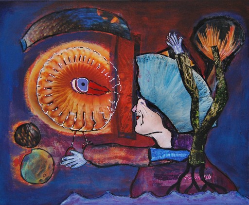Ik schilder en teken wat ik zie, denk en fantaseer. Kleur is erg belangrijk voor mij. Verder zoek ik afhankelijk van het onderwerp en stemming naar de materialen die mij de meeste uitdrukkingsmogelijkheden bieden zoals acrylverf, papier, zand, gel, pasta. Eigenlijk alles wat voor handen is op dat moment.